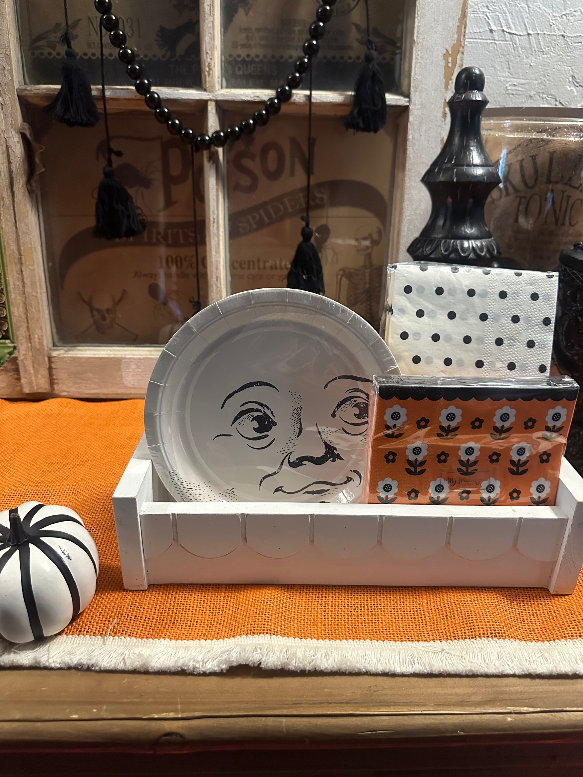 Pack a punch of orange to your Halloween gathering with our Floral Cocktail Napkin. This folksy napkin features a unique black and orange floral design that is perfect for adding a touch of whimsy to your party. It has an orange background accented with bold white and black flowers. A cute scalloped border trims the edges.
